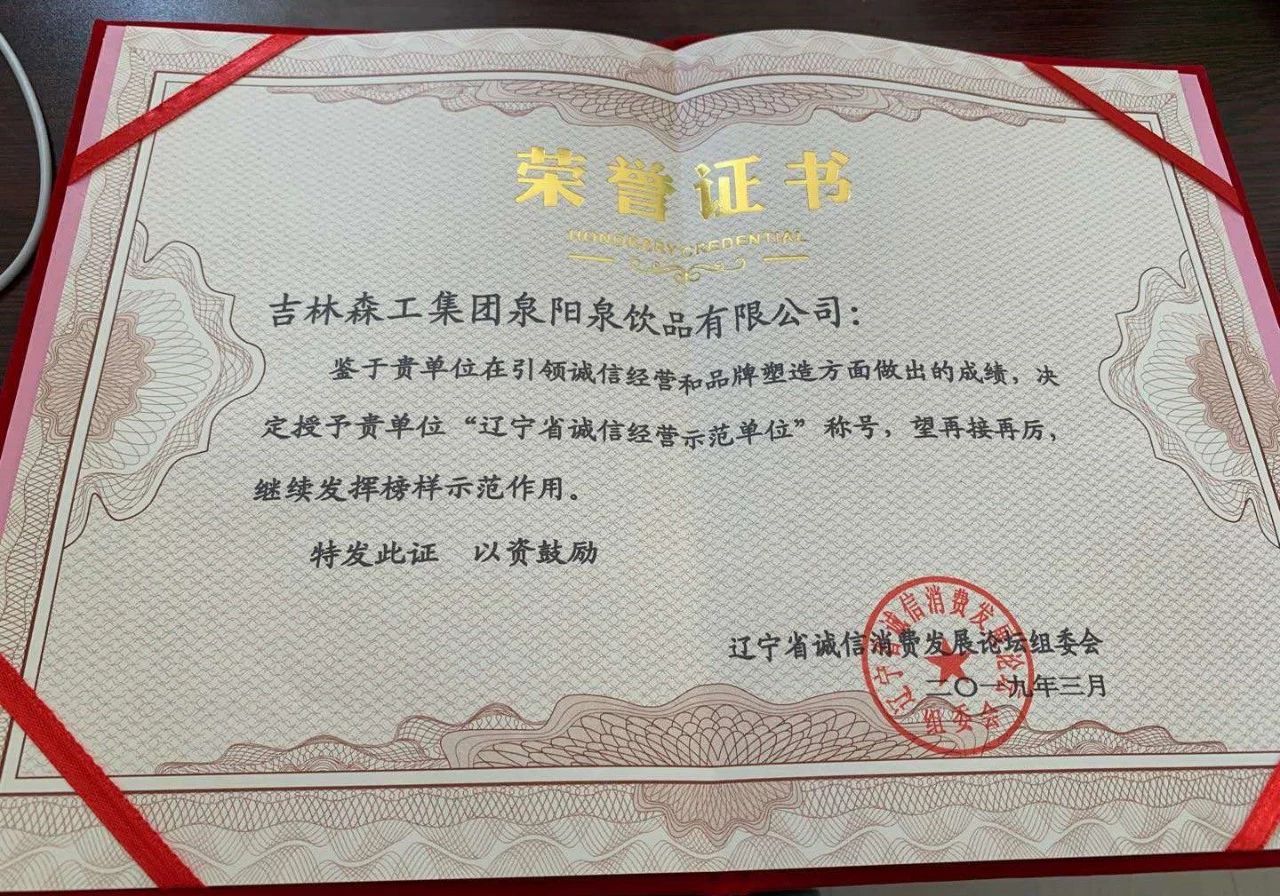 ? ? ? ? ?為了更好地貫徹落實習近平總書記在民營企業(yè)家座談會上的講話精神,以“保質保量、誠信經營、綠色消費”為主題,樹立一批“講誠信,負責任,守法紀”的先進典型。為企業(yè)與企業(yè)之間、企業(yè)與單位之間、企業(yè)與消費者之間搭建了一個很好的交流、合作平臺。在此次論壇中,吉林森工集團泉陽泉有限公司榮獲“遼寧省誠信經營示范單位”榮譽稱號。